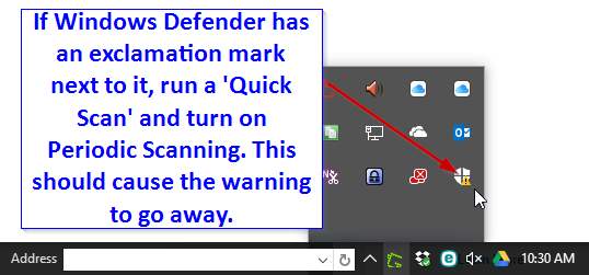 Windows Defender may show you an Exclamation Mark – or Warning!